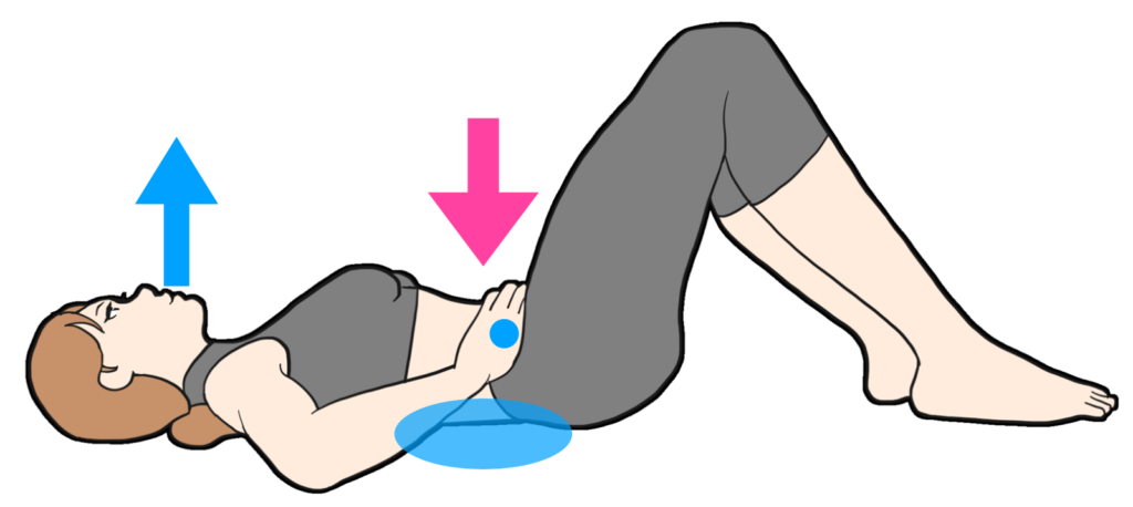 お腹をへこませながら自然呼吸。腹横筋・横隔膜も活性化。
