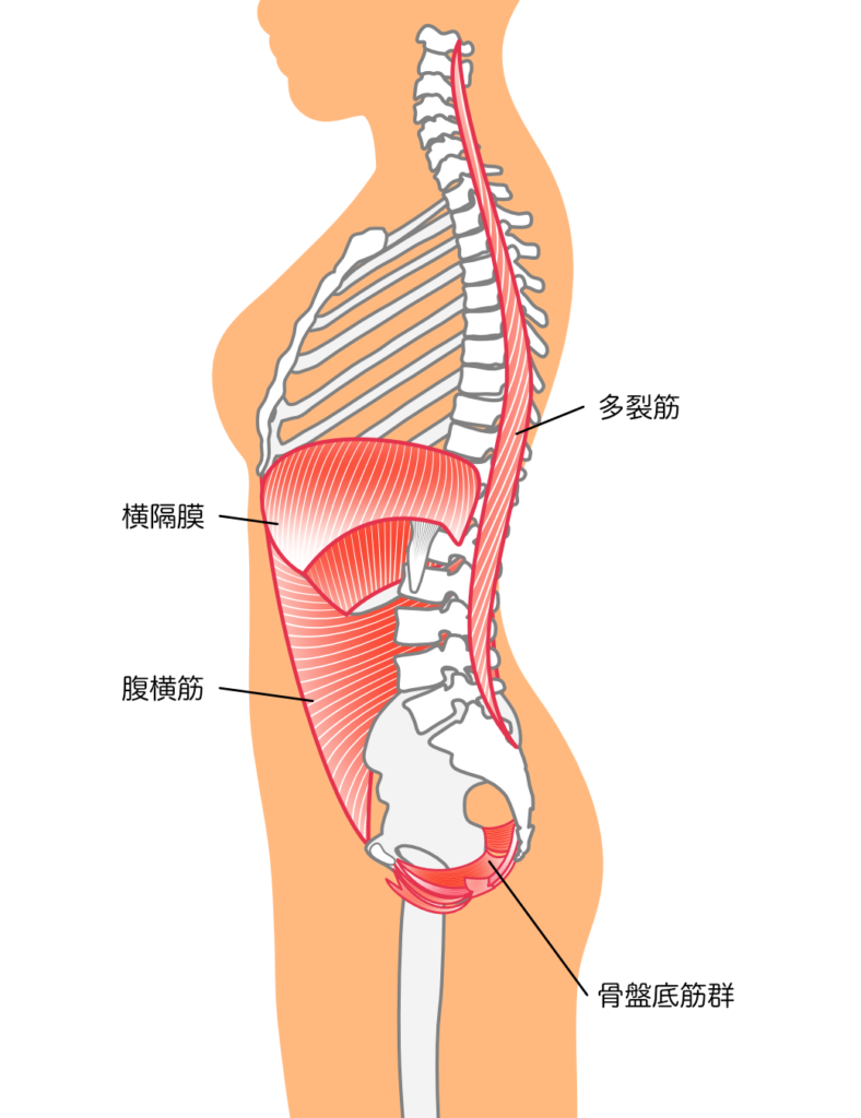 - 横隔膜:呼吸で上下し、体幹の働きを助ける