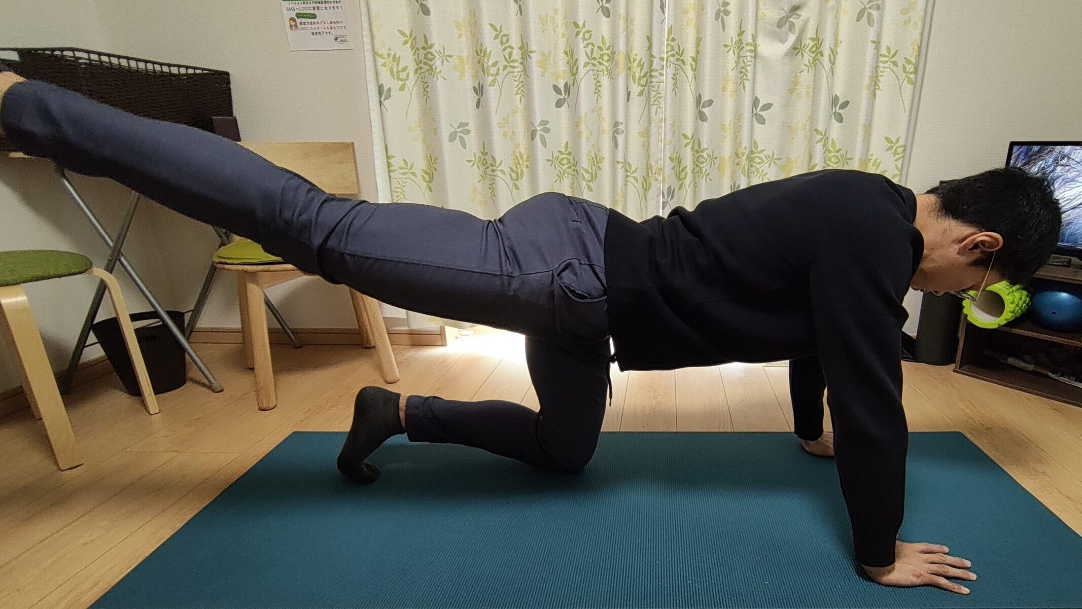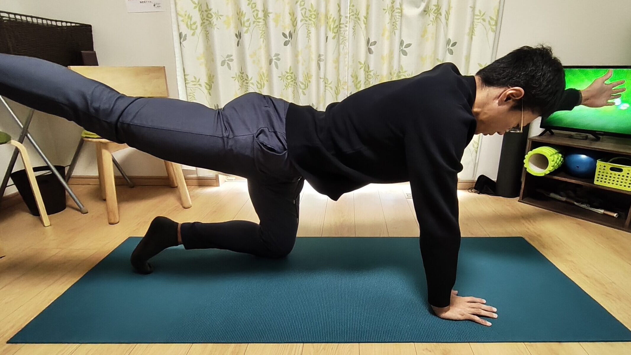 バードドッグ(手足同時伸ばし)5秒 × 5セット